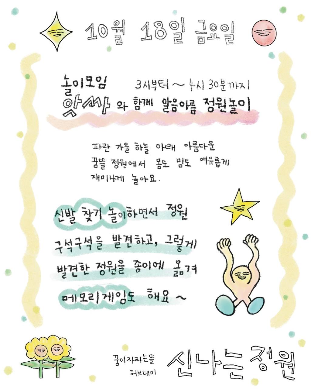 🙋🏻♀️ 10월 16일(수)까지, 알고계신 꿈뜰 일꾼들에게 참여의사를 알려주세요. 적당한 자리를 마련하고, 허브데이 공지에 덧붙일게요. 댓글이나 메세지로 알려주시길! 문의도 환영합니다.