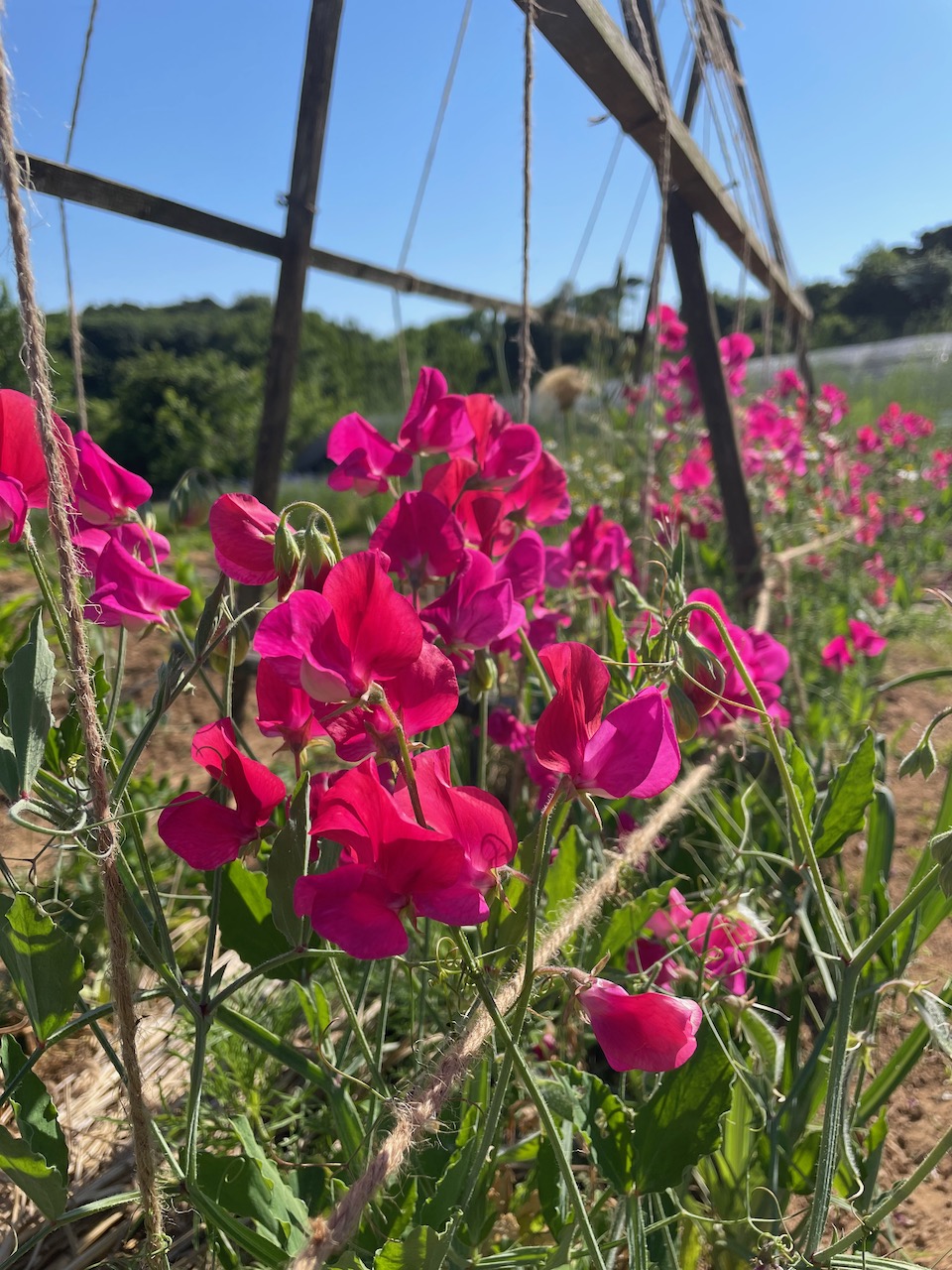 습도가 낮고 공기가 선선해서 쾌적하니 일하기 아주 좋습니다. 일하다보면 잘 익은 딸기냄새, 진한 쥐똥나무 꽃향기, 달콤한 스위트피 향기가 은은하게 풍겨오는데, 가까이 다가가 한번 더 맡아보고 싶을만큼 향이 좋습니다. 농장 주변에 뽕나무가 많은데, 오디도 열리기 시작했어요.