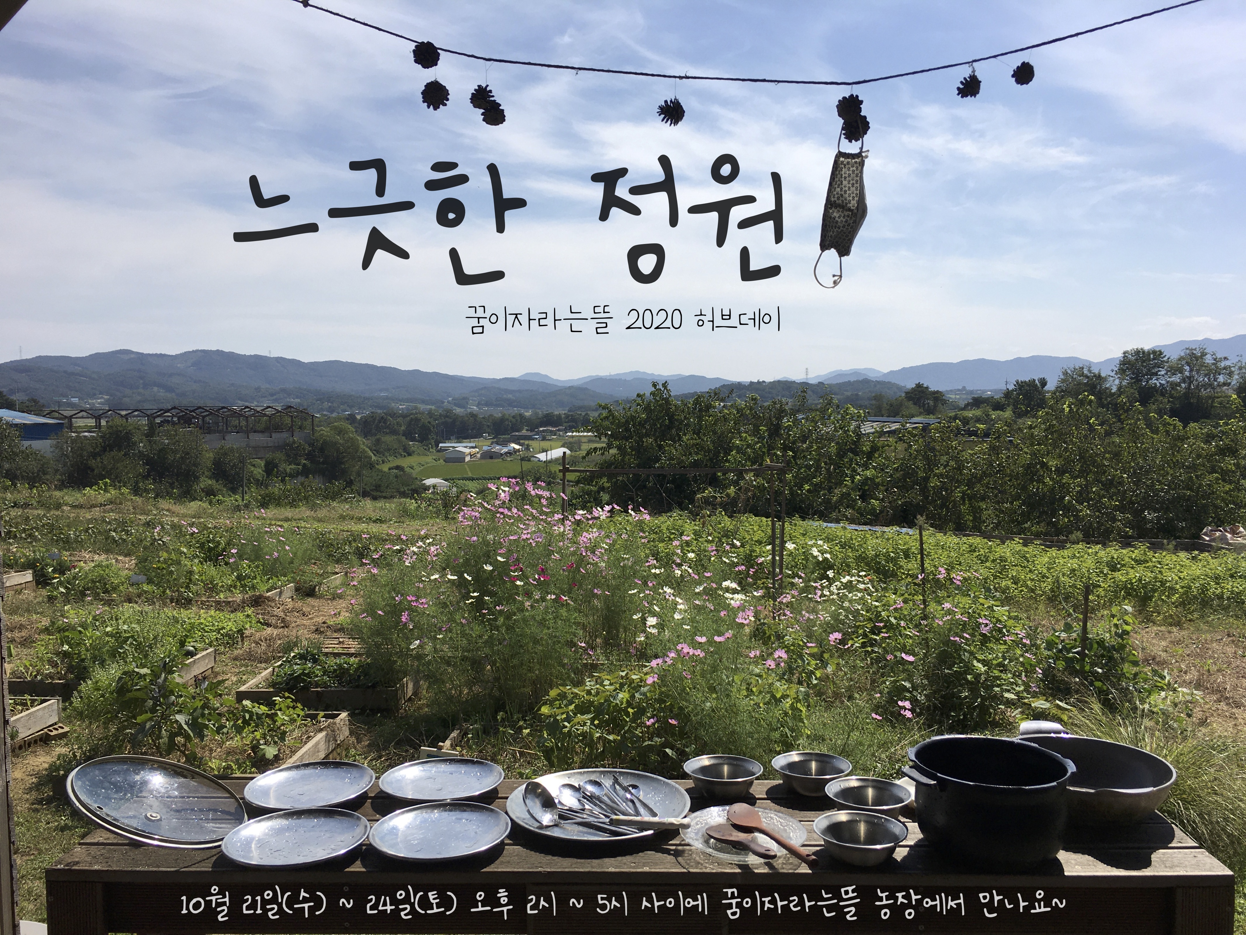 따뜻한 햇살이 내리쬐는 탁트인 농장으로 꿈뜰 이웃들을 초대합니다. 코로나19 때문에 예전처럼 풍성한 음식과 즐길거리를 나눌 수는 없습니다만, 바람이 잘 통하는 넓은 야외공간에서 올 해도 소소한 만남을 이어가려고 합니다.
