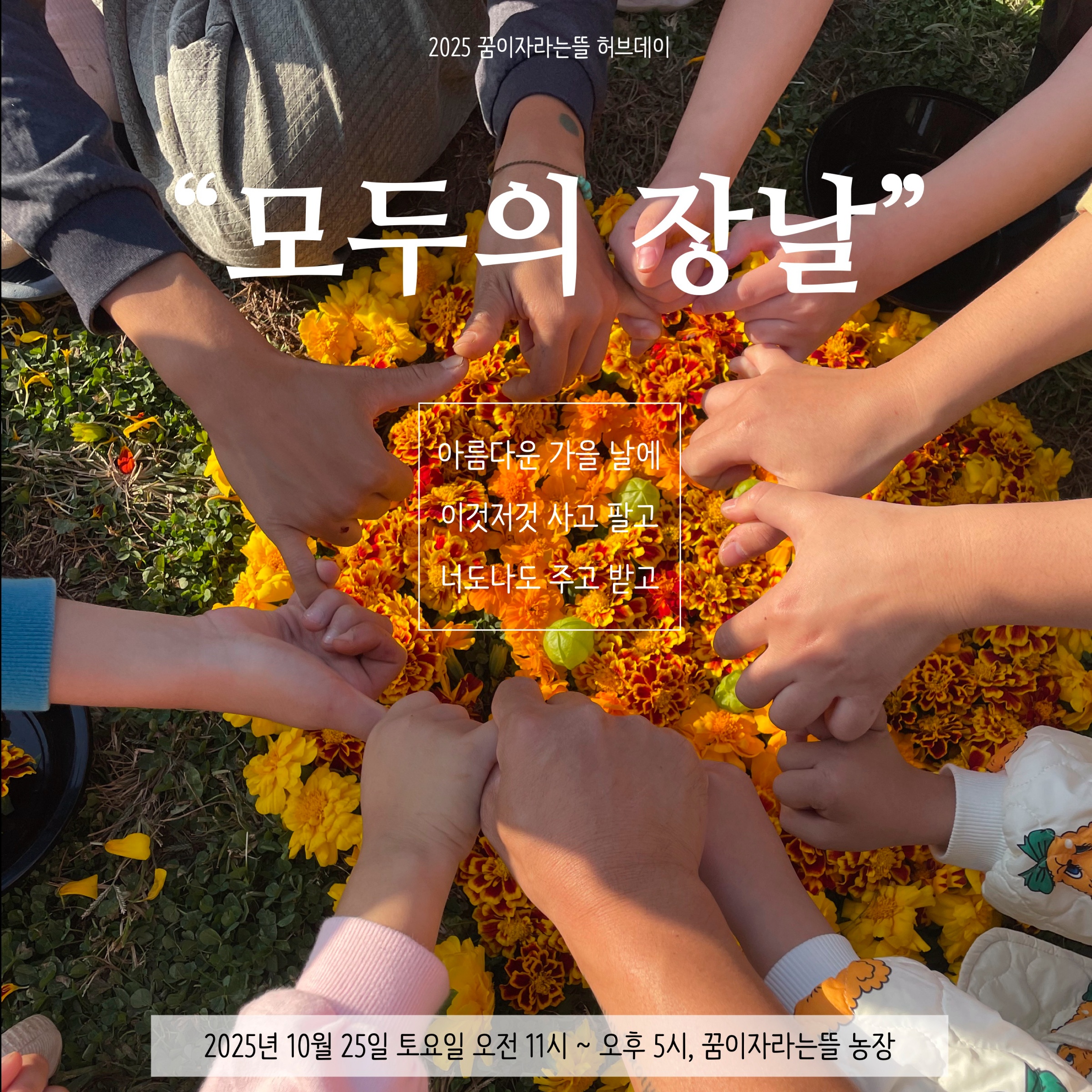 장터에 가면 다양한 사람들, 신기한 음식들, 온갖 물건들, 재미난 이야기들을 고루 만날 수 있지요. 꿈뜰 농장에 장이 선다면 어떤 풍경일까요? 북적북적, 와글와글, 옹기종기~ 이것저것 사고 팔고, 너도나도 주고 받고! 이런 모습이지 않을까요 ^^ 가을에만 느낄 수 있는 농장의 아름다움을 여러 이웃들과 나누고 싶어요! We welcome All~