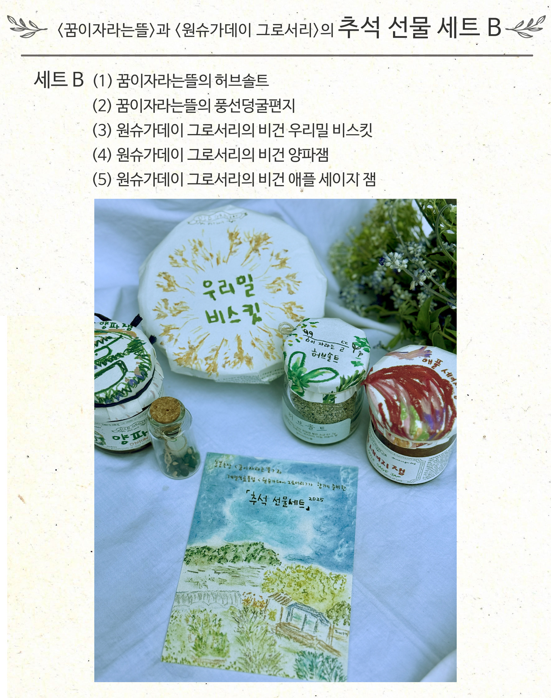 알땅콩과 피땅콩, 허브솔트, 허브차, 땀수건, 텃밭일지, 고춧가루를 사실 수 있어요~