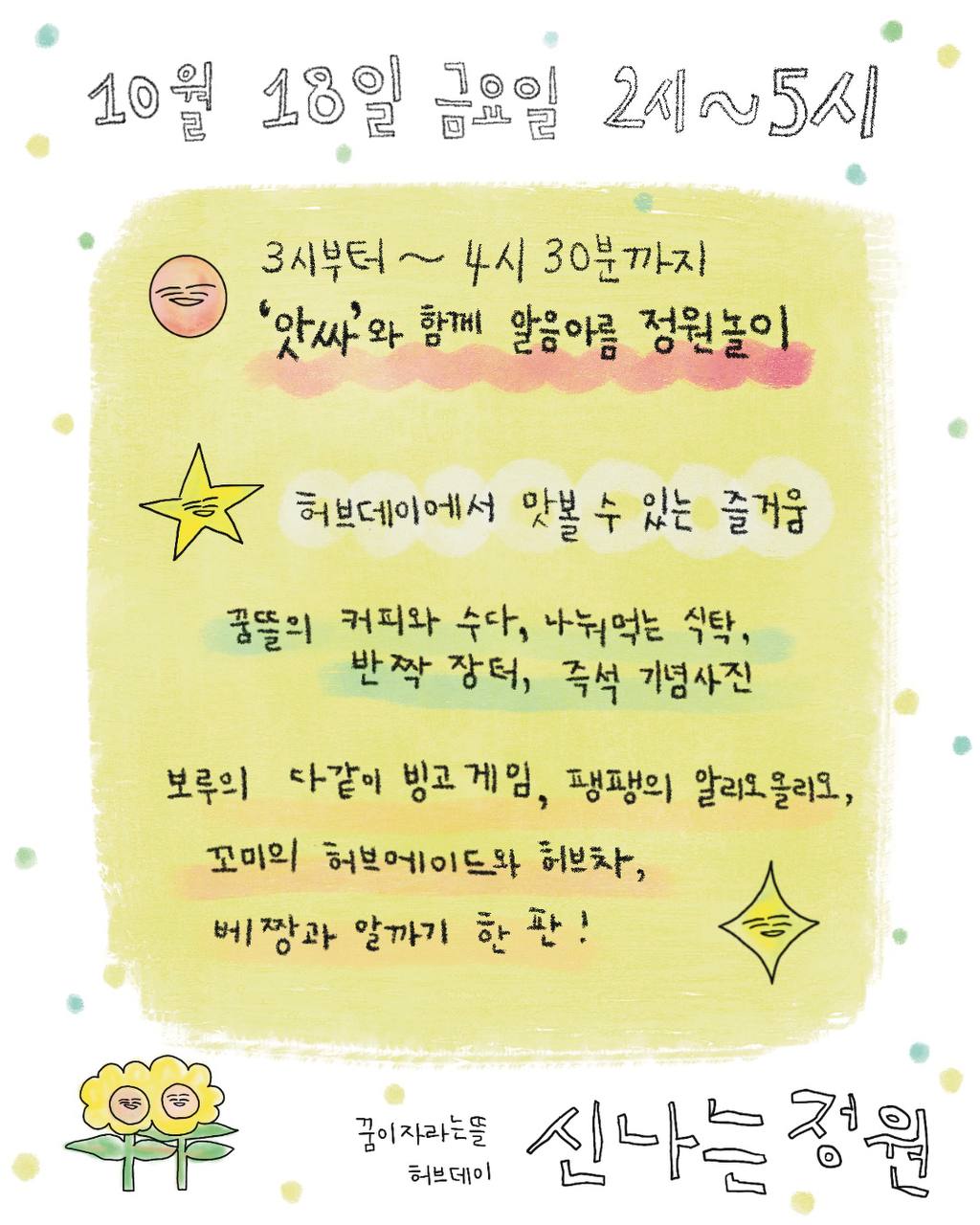 🌳 10월 18일(금)~19일(토) 오후 2시~5시, 꿈이자라는뜰 농장에서 만나요.
