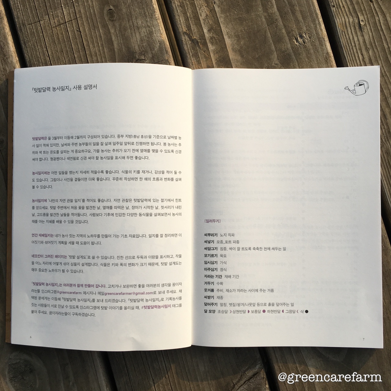➤ 농부의, 농부를 위한, 농부가 엮은 <2016 텃밭일지 농사달력> www.greencarefarm.org/235