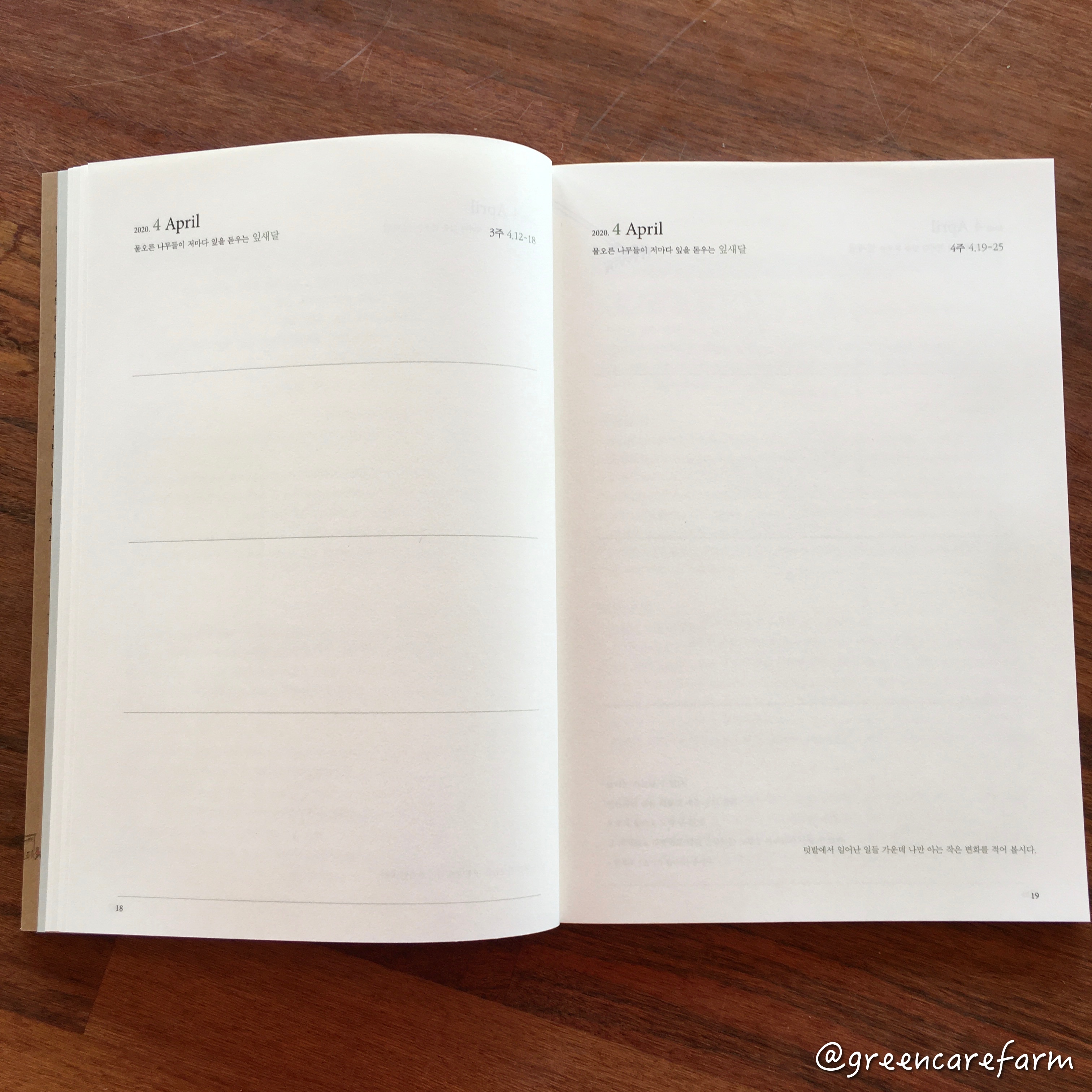 논, 가축, 과수농사를 위해 가계부와 한 자리에 모아 적는 농사일지를 따로 마련하였습니다. 데일리288에만 있습니다.