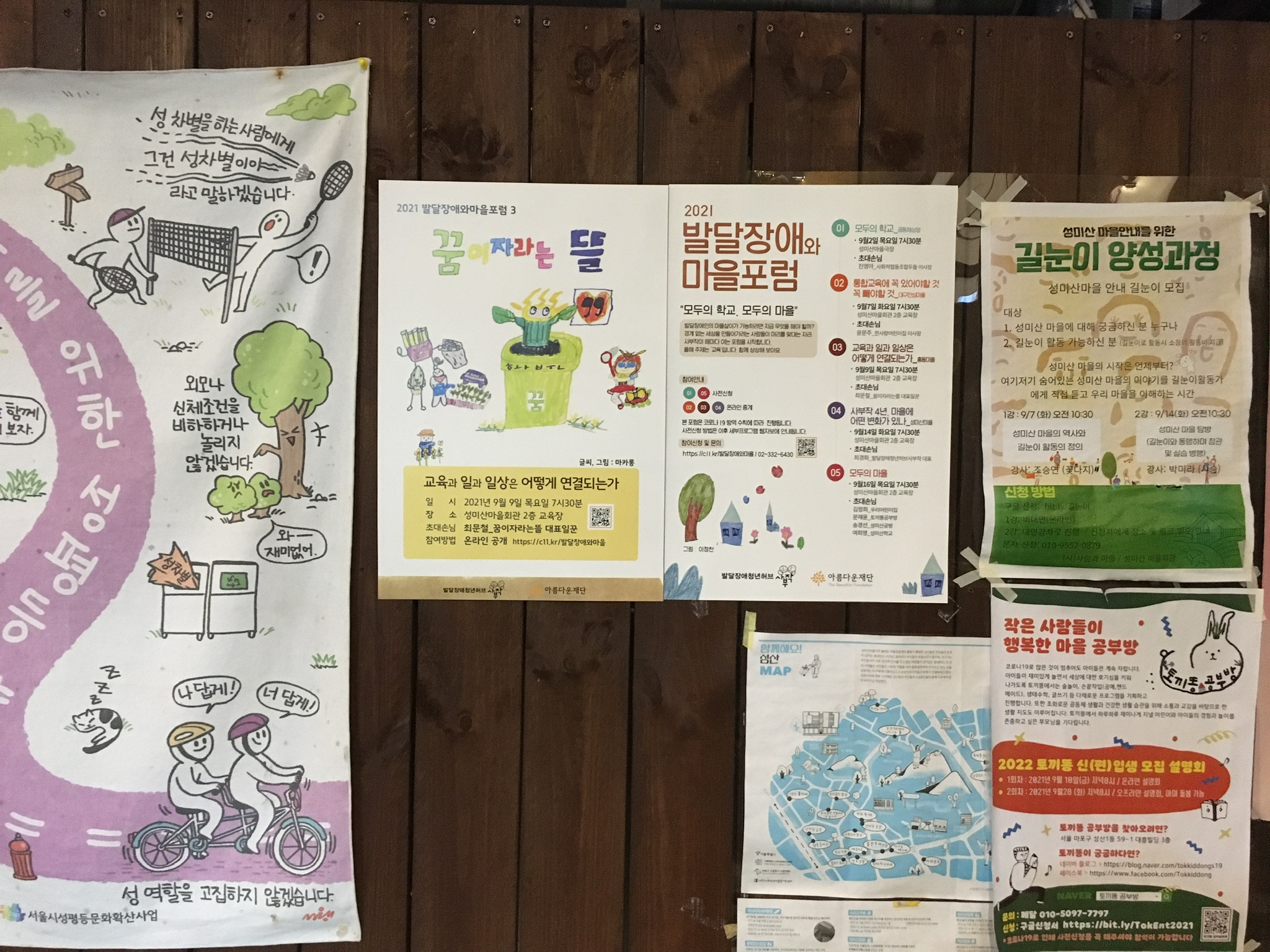 2년 전에 시작한 책 모임에서, 발달장애인을 둘러싼 다양한 옹호인들 - 특수교사, 부모와 가족, 관련 종사자, 마을주민들을 꾸준히 만나고 있다. 한 시간이 넘는 거리에서 매번 찾아오는 사람도 있다. 650페이지가 넘는 두꺼운 책 《아이를 위한 정신의학》을 천천히 소리 내서 다 읽었고, 혼자 읽을 땐 이해하기 어려웠던 책 《짐을 끄는 짐승들》을 이어서 함께 읽고 있다. 책 모임을 통해 발달장애인뿐만 아니라 옹호인들도 외롭다는 것을, 환기와 환대가 필요하다는 것을 새롭게 알게 되었다. 함께 책을 읽고, 공부하고, 대화하는 과정에서 자신의 모습과 필요를 안전하게 드러낼 수 있는 관계가 만들어지는 것을 보았다.