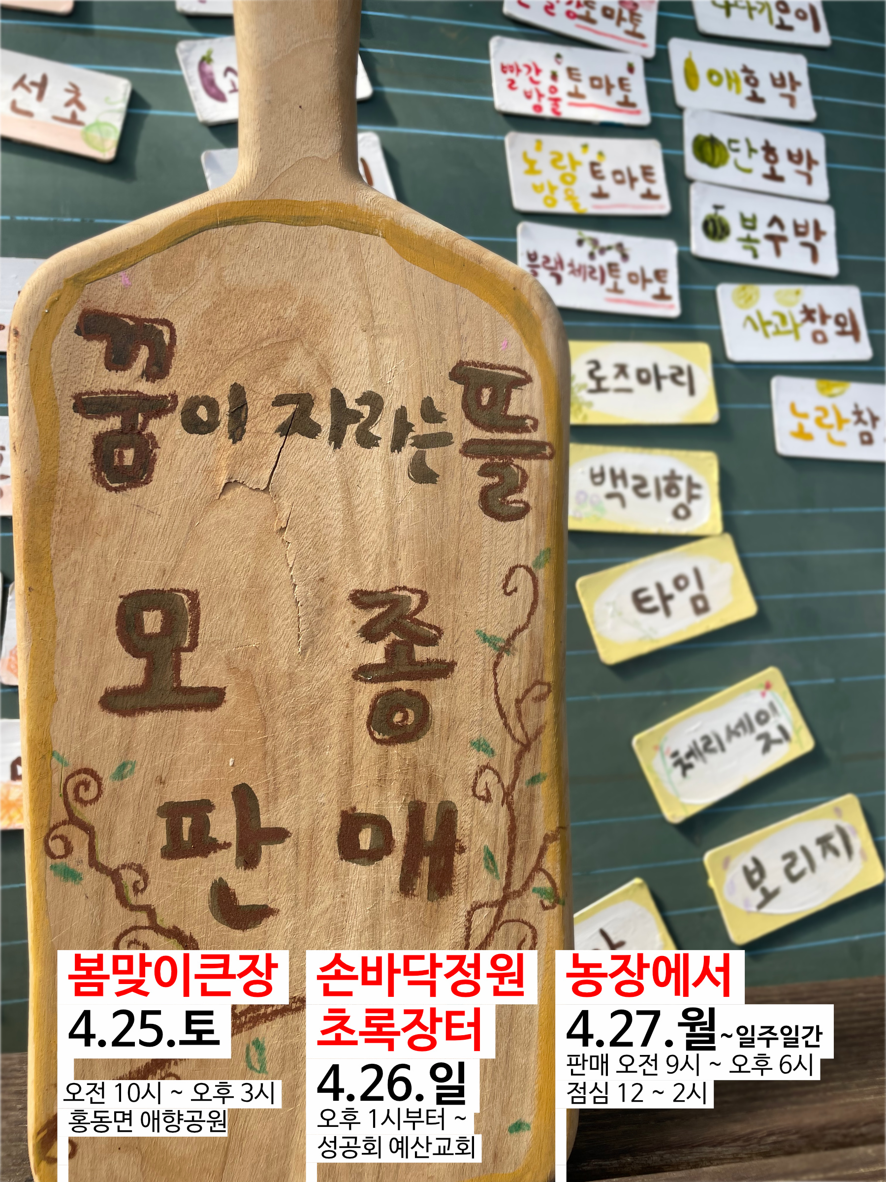 3. 봄맞이 큰장이 열려요. 꿈뜰은 꽃 채소 허브 모종을 들고 나갑니다. 4월 25일 토 오전10시~오후3시, 애향공원에서 만나요!