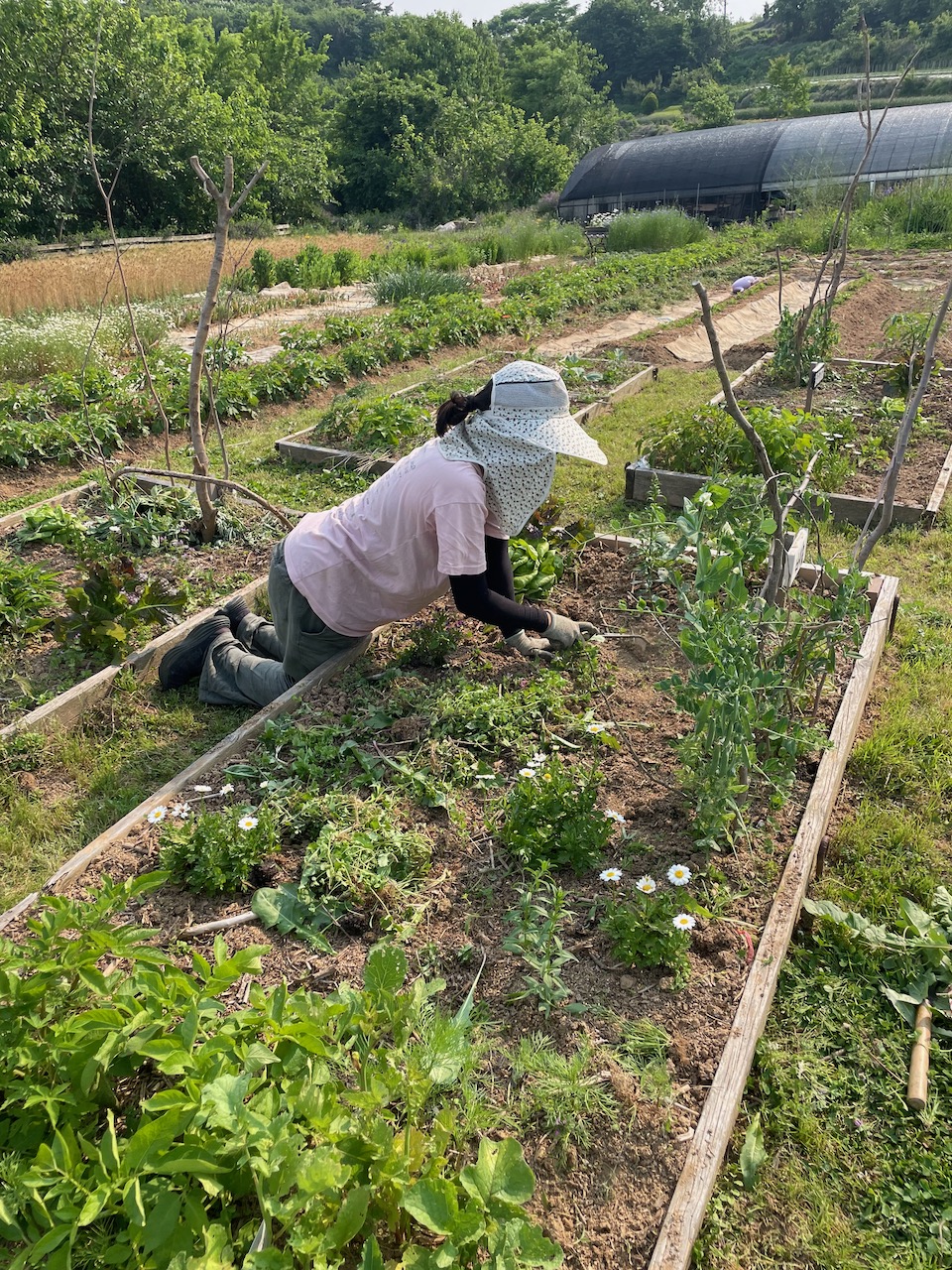 습도가 낮고 공기가 선선해서 쾌적하니 일하기 아주 좋습니다. 일하다보면 잘 익은 딸기냄새, 진한 쥐똥나무 꽃향기, 달콤한 스위트피 향기가 은은하게 풍겨오는데, 가까이 다가가 한번 더 맡아보고 싶을만큼 향이 좋습니다. 농장 주변에 뽕나무가 많은데, 오디도 열리기 시작했어요.