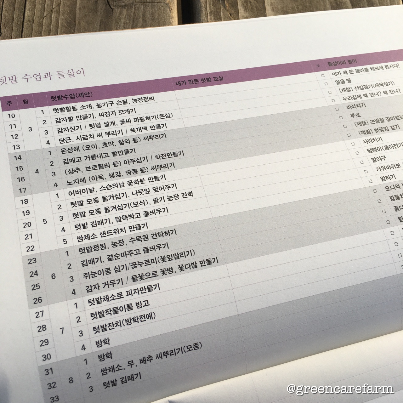 <텃밭일지농사달력> 맨 뒤에 있는 1년 텃밭수업과 들살이는 이런 자료를 모아서 만들었답니다.